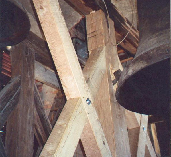 Es ist manchmal auch notwendig, Arbeiten am Glockenstuhl oder an den Turmjalousien zu machen. Auch hier sind wir der richtige Ansprechpartner. Leider werden Holzglockenstühle, die noch (teilweise) in Ordnung sind, oft komplett getauscht. Meist ist es jedoch sinnvoller, diesen alten Glockenstuhl zu sanieren. Dies hat mehrere Gründe:•er ´wackelt´, weil Verbindungen geschrumpft oder ausgeleiert sind (leicht behebbar).•das alte Holz ist von bester Qualität.•Kostenfaktor.Warum bevorzugen wir diese Teilsanierungen? Es ist (fast) nicht mehr möglich, im Winter geschlägertes und luftgetrocknetes Holz (mindestens 10 Jahre gelagert) zu kaufen. Turmjalousien dienen nicht nur dem Wetterschutz. Die Bauform der Reflexionsbretter ist für eine optimale Klangdurchmischung der Glockentöne verantwortlich. Der Winkel der einzelnen Schall-lenkungsbretter ist für die optimale Schallverteilung nach außen verantwortlich. Im Nahbereich sollen die Glocken leise klingen und im Fernbereich sollen sie noch gut hörbar sein.